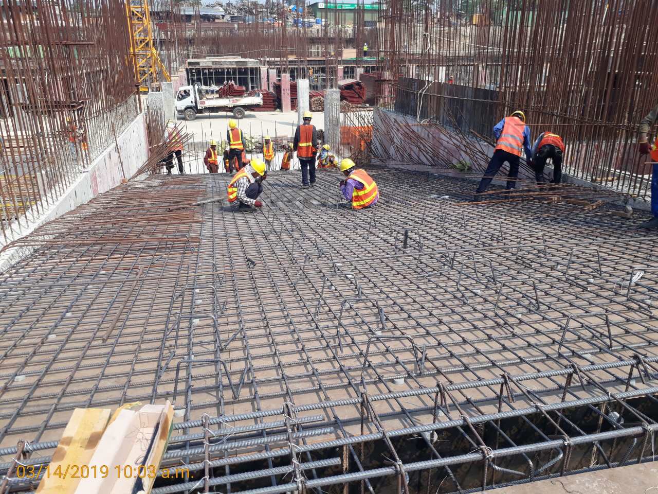 아래는 105동, 호텔쪽 벽체 철근 작업중인 모습입니다.