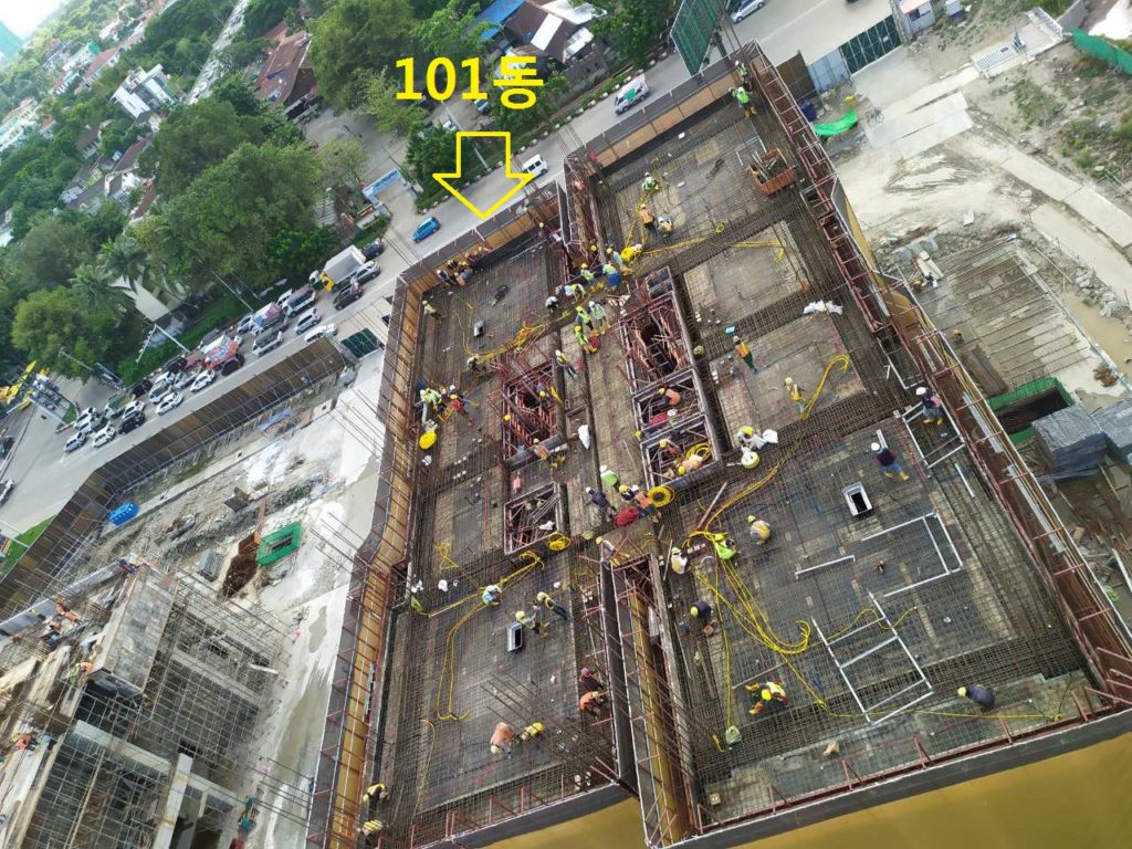 104동, 105동 상가가 다 올라갔고 그 위에 아파트 골조 올라가려고 하고 있습니다.