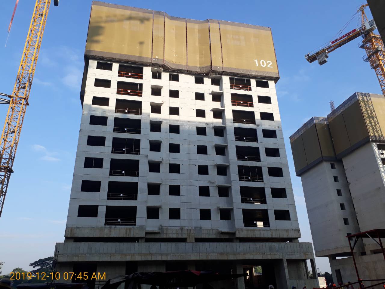 102동은 12층-13층 골조 공사중입니다.