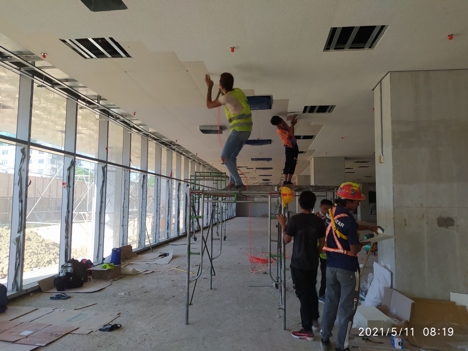 상가 2층 천장에 텍스 시공중입니다.