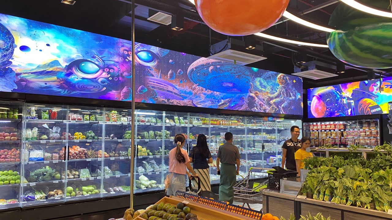 저녁 늦은 시간까지 원스톱 슈퍼마켓 이노시티점은 사람들의 발길이 이어집니다.